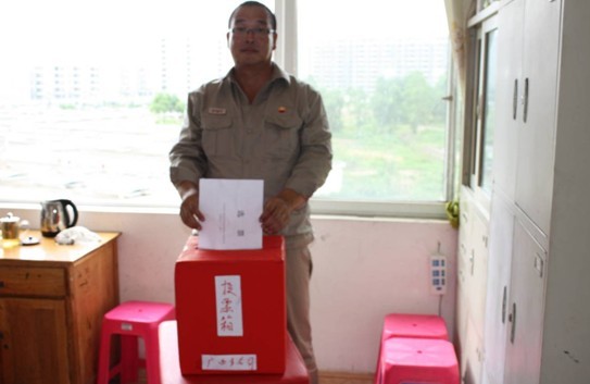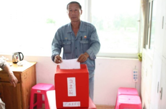 广西视频会场的党员在投票选举